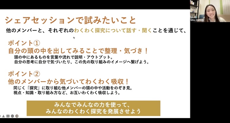 「中間シェアセッション:序論の構成を意識しながら、各自のわくわく探究のテーマや方向性を共有しよう」です。