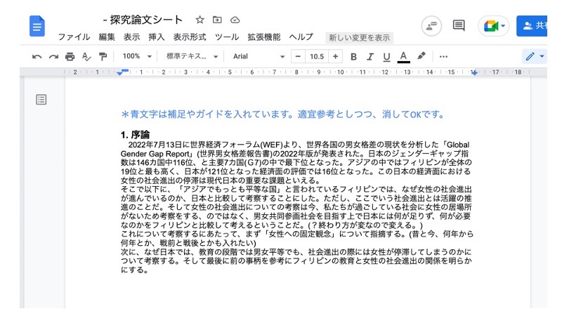 各自の探究論文シートでは、試しの序論から、考えを言葉として書くことにも徐々に挑戦しはじめています。